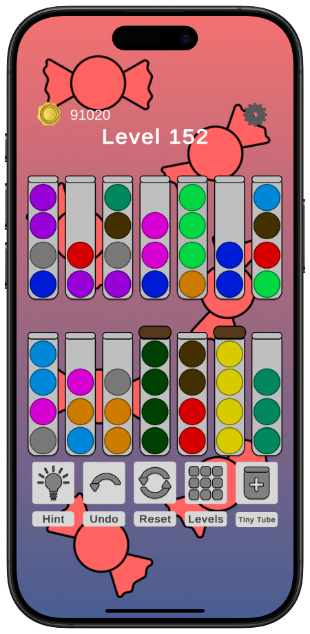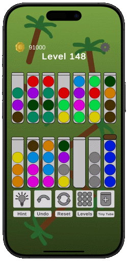 Ball Sorting in Tubes is a 2D Puzzle Game with thousands of unique levels. This project was an introduction to some of Unity's features such as Unity Ads and creating 2D puzzle games. This game includes different backgrounds and ball colors that are available for purchase by money or in game currency.